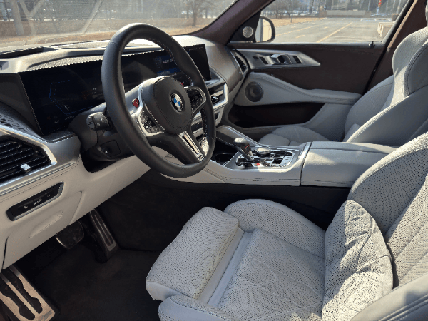 操控方面,宝马XM彻底打破了“大块头不灵活”的传统印象。作为首款配备整体主动转向系统的M车型,四轮转向技术让这款5米多长的SUV拥有惊人的灵活性,转弯半径大幅缩小,城市掉头、低速挪车都十分轻松。配合具备48V主动侧倾稳定系统的自适应M运动悬架Pro,车辆在过弯时的侧倾被抑制到极致,即使是高速过弯,车身姿态也依旧稳健,丝毫没有大型SUV的笨重感。M xDrive四驱系统采用后驱偏置的设定,带来接近后驱车的驾驶乐趣。开启运动模式后,车尾能实现轻微的滑动,操控极限极高。刹车系统的制动力强劲且线性,高强度驾驶下也能保持稳定的制动表现。不过,为了追求极致的操控,宝马XM也做出了一些妥协。悬挂调校整体偏硬,即使在舒适模式下,路面的细微颠簸也会传入车内,过减速带时的滤震表现一般,后排乘客的舒适性会受到一定影响。同时,V8发动机的油耗表现并不友好,混动模式下城市通勤油耗偏高,燃油经济性并非其强项。