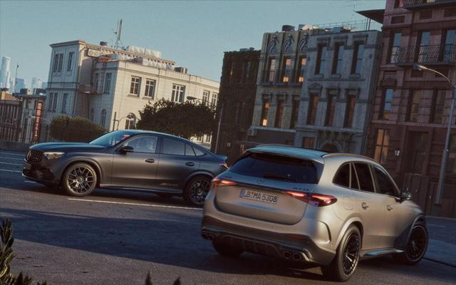 奔驰在2月11日发布了全新GLC 53家族官图,包含常规SUV版与Coupe轿跑版两种车身形式。两款新车外观基本保持不变,前脸是家族经典的圆润梯形中网,内置竖向镀铬饰条,分体大灯组内部上方为行车LED灯带,侧导风槽与下进气口集中在前杠位置,视觉重心下压,保持强烈运动感。常规SUV版侧面比较舒展,尾部与普通版奔驰SUV差别不大,但熏黑大尺寸锻造轮毂、熏黑后视镜和双边四出排气依然暴露其攻击性。Coupe轿跑版保持掀背造型,尾部配有大尺寸鸭尾,尾灯内部造型也更加动感,整体的运动感更强烈。