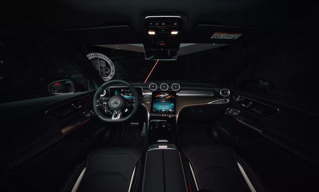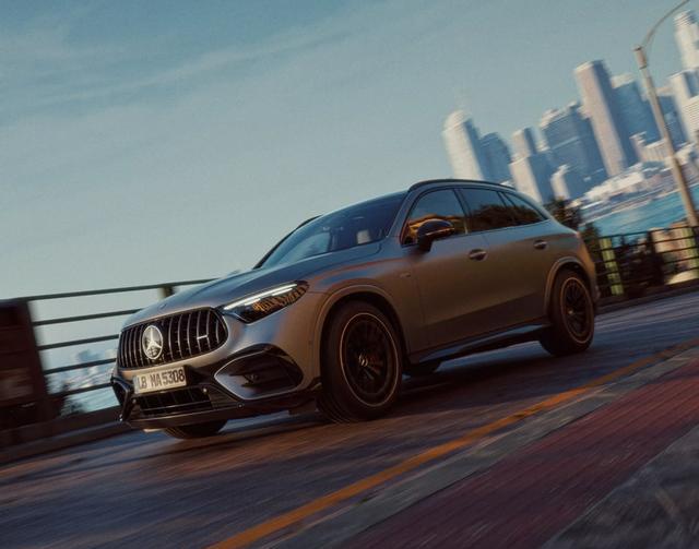 新车内饰维持现款GLC设计同时,细节向AMG风格倾斜,三辐式方向盘功能按键丰富,中控区域加入碳纤维饰板,中控屏为竖向设计,配合金属包边等装饰,尽显豪华质感。动力系统由此前的2.0T+轻混升级为3.0T直列六缸发动机+轻混系统,可迸发最高449匹马力,匹配9速手自一体变速箱与全时四驱系统,零百加速为4.2秒。底盘标配后轮转向系统,此外还提供“漂移模式”,可付费开启。