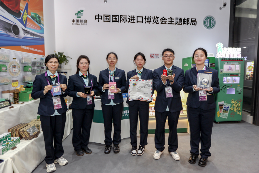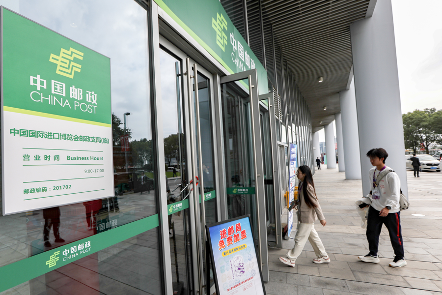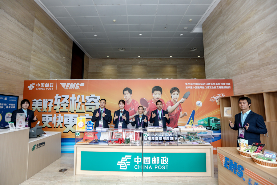 本届进博会,上海邮政在馆内设置进博主题邮局和进博临时邮局,并在B、C、D办公楼各设有服务点,提供邮件收寄、上门投递及布撤展过程中的物流配送、产品销售等服务,全面满足了各类机构和参展商的用邮需求。